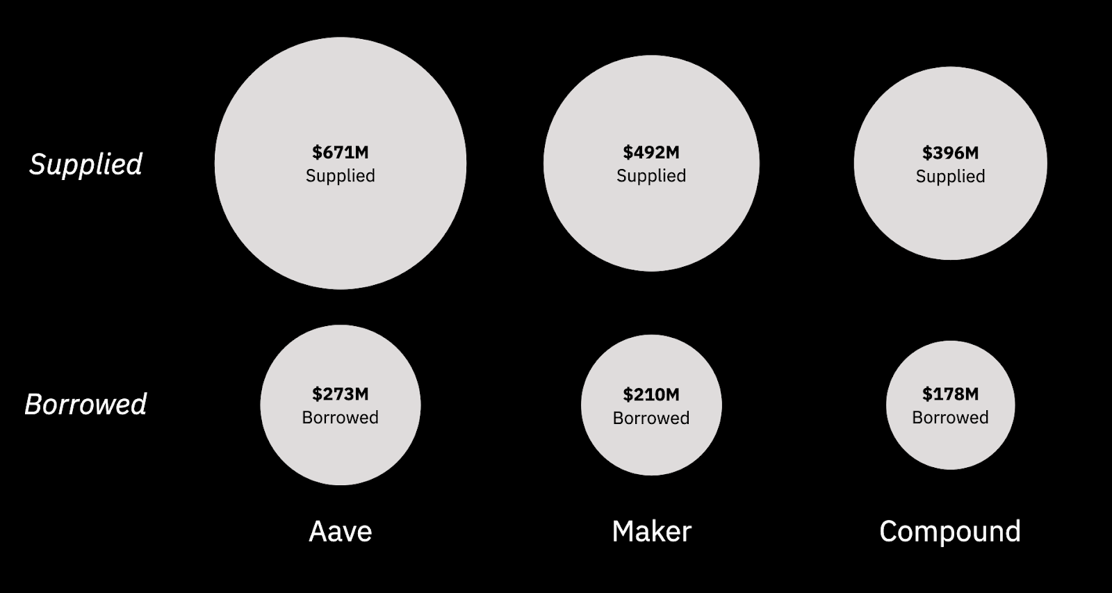 Based on Arkham’s analysis of Celsius wallets, Celsius was one of the biggest players in DeFi, accounting for a huge portion of the funds deployed to the three largest DeFi protocols, Compound, Aave, and Maker. Below are suspected Celsius DeFi positions on June 21st, 2022, eight days after freezing user accounts: